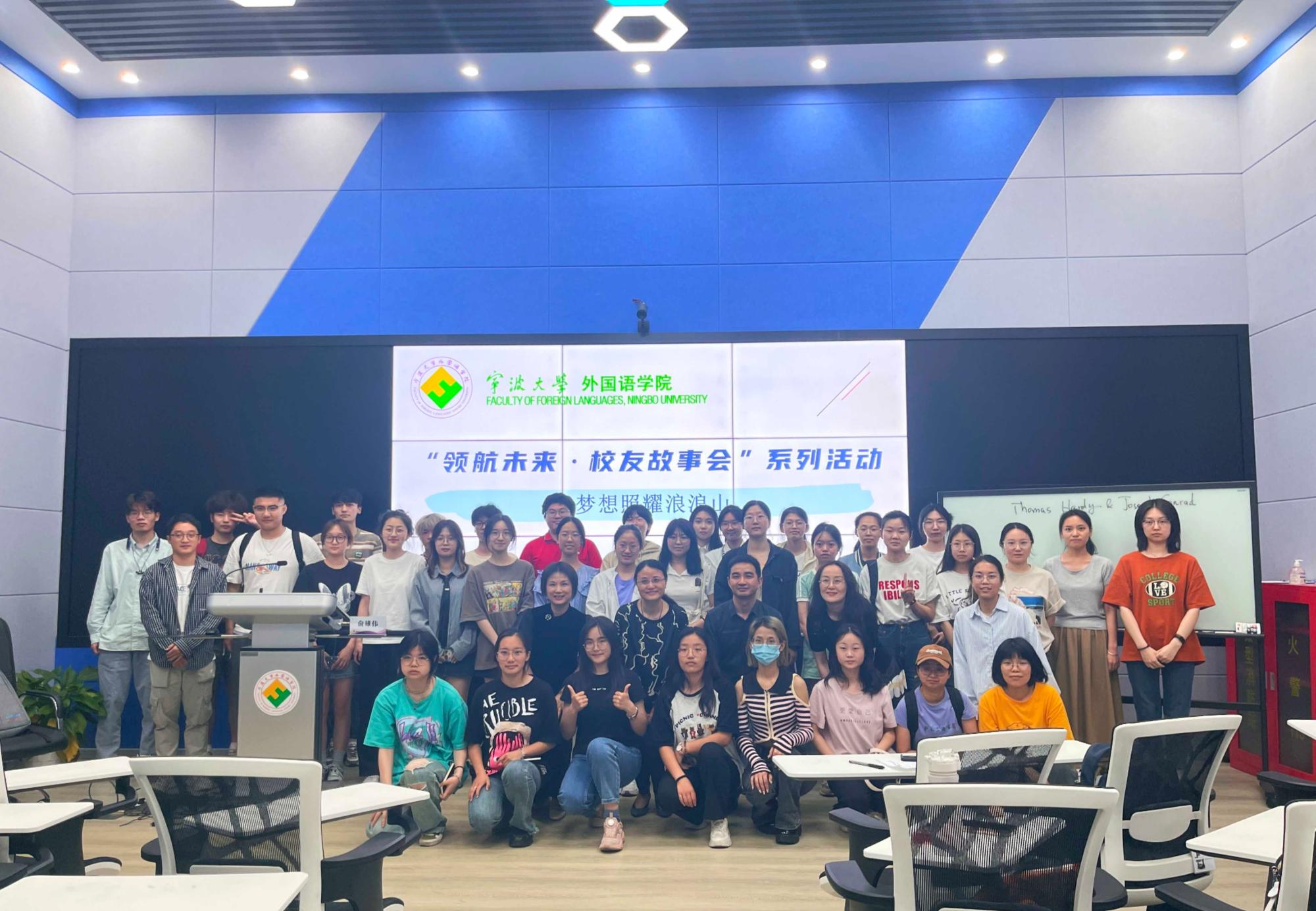5月15日,外国语学院“领航未来·校友故事会”系列活动第三期——“梦想照耀浪浪山”在李达三外语楼210精彩开讲。学院党委书记翁华星、党委副书记胡佳、2022级英语(师范)班主任梁虹和40余名本硕学生参加本次活动。宁波格立光电科技有限公司创始人和总经理、宁波盛和塾理事、外国语学院1998级英语专业校友俞雄伟应邀担任主讲人。