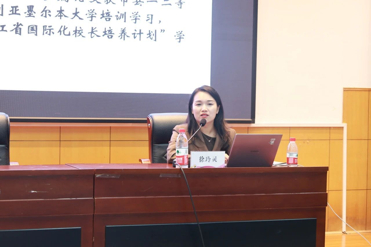 徐玲灵在讲座伊始就“人生中两件事不能马虎”提出了她的观点,她认为找对事业便是其中之一。她分享了自己开始从事英语教师行业的经历,以及她在常山县天马第一中心小学、浙江省教育厅挂职期间的工作中获得的心得体会,并强调了学习深造、热爱事业、认真努力的重要性,同时告诉了同学们成为一名教师所需要的素质。