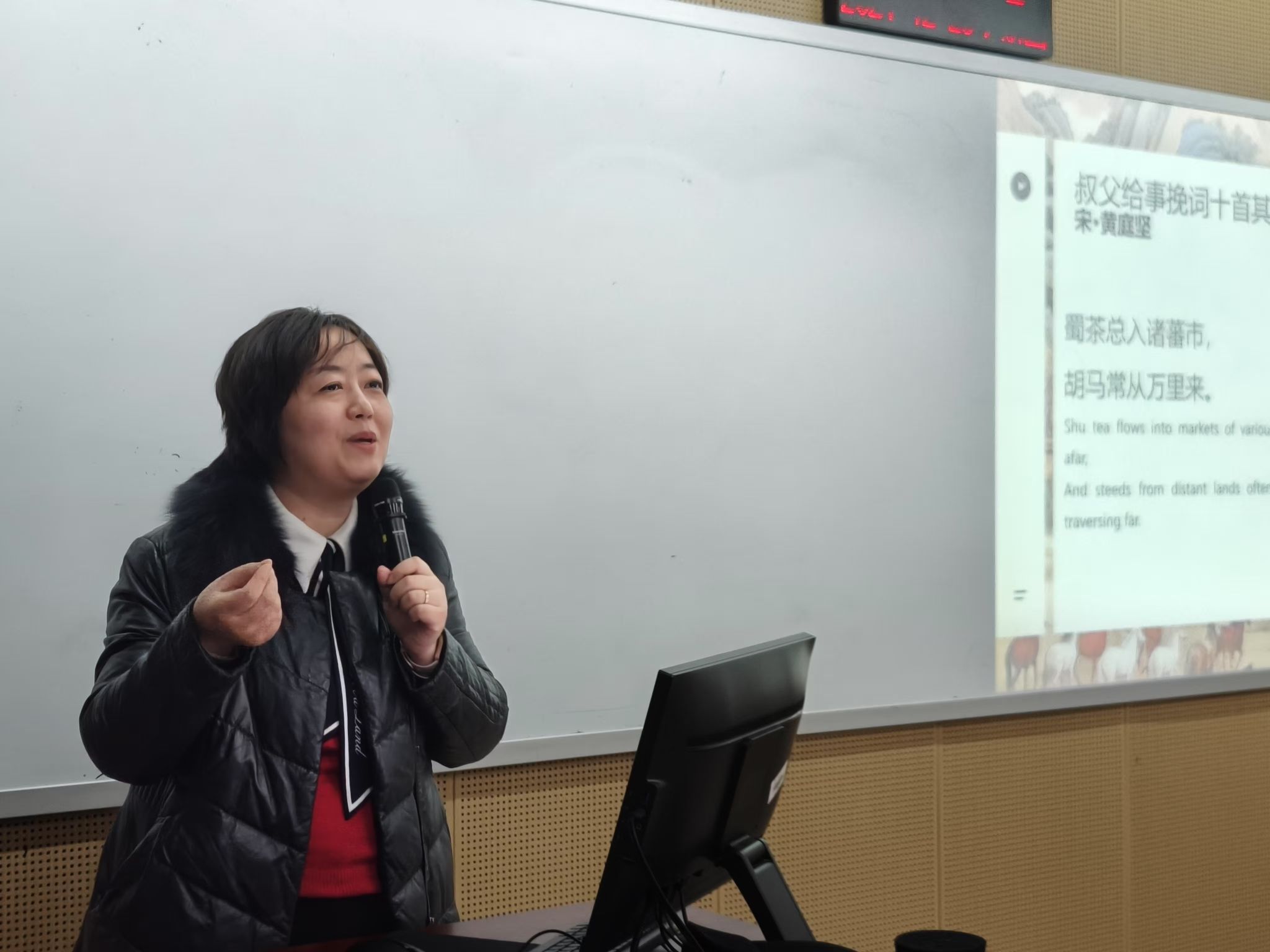 贺莺教授则结合历史故事,为师生们深刻剖析了茶叶在明代边疆治理中的重要性及其多维逻辑。她提到:“茶,不仅是大自然的无私馈赠,更是中华民族政治智慧、军事策略与文化交流的结晶。黄庭坚有诗云,‘蜀茶总入诸蕃市,胡马常从万里来’,明代茶马贸易增加了财政税收,满足了军事需求,加深了中原与边疆的文化交融,促进了民族融合”。