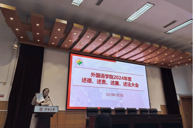 2025年1月3日,外国语学院召开了2024年度党政领导班子述职、述廉、述责、述法大会暨全院教职工大会。特聘院长屠国元和党委书记翁华星在会上做了全面的个人报告,回顾了过去一年学院的各项工作成果,并对2025年工作进行了展望。