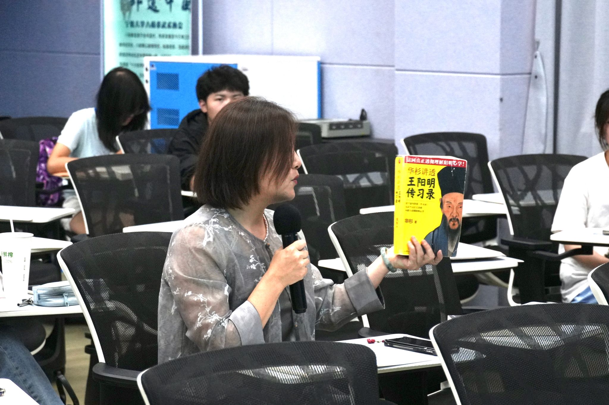 讲座尾声,黄懿老师总结强调王阳明思想在个人世界观、人生观、价值观和方法论层面的重要指导意义,鼓励大家研读《传习录》,从中汲取人生智慧。贾玉成副教授分享讲座收获和个人感悟,指出对外部世界的感知终将回归本心。