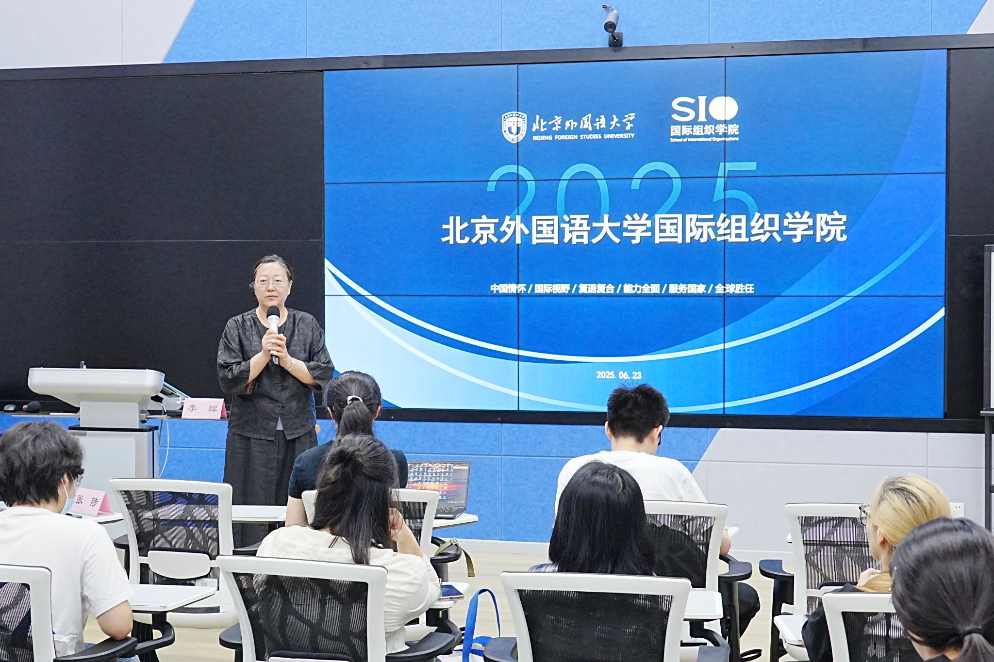 李辉教授作“以全球胜任力为导向的人才培养体系”主旨发言,系统阐述了北外国际组织学院的创办背景、发展历程、人才定位(培养通晓国际规则、具备卓越跨文化沟通能力、能胜任国际组织实务的复合型高端人才)及项目特色,强调其依托北外深厚外交资源与广阔国际平台,已成为国内该领域的先行者与实践基地。