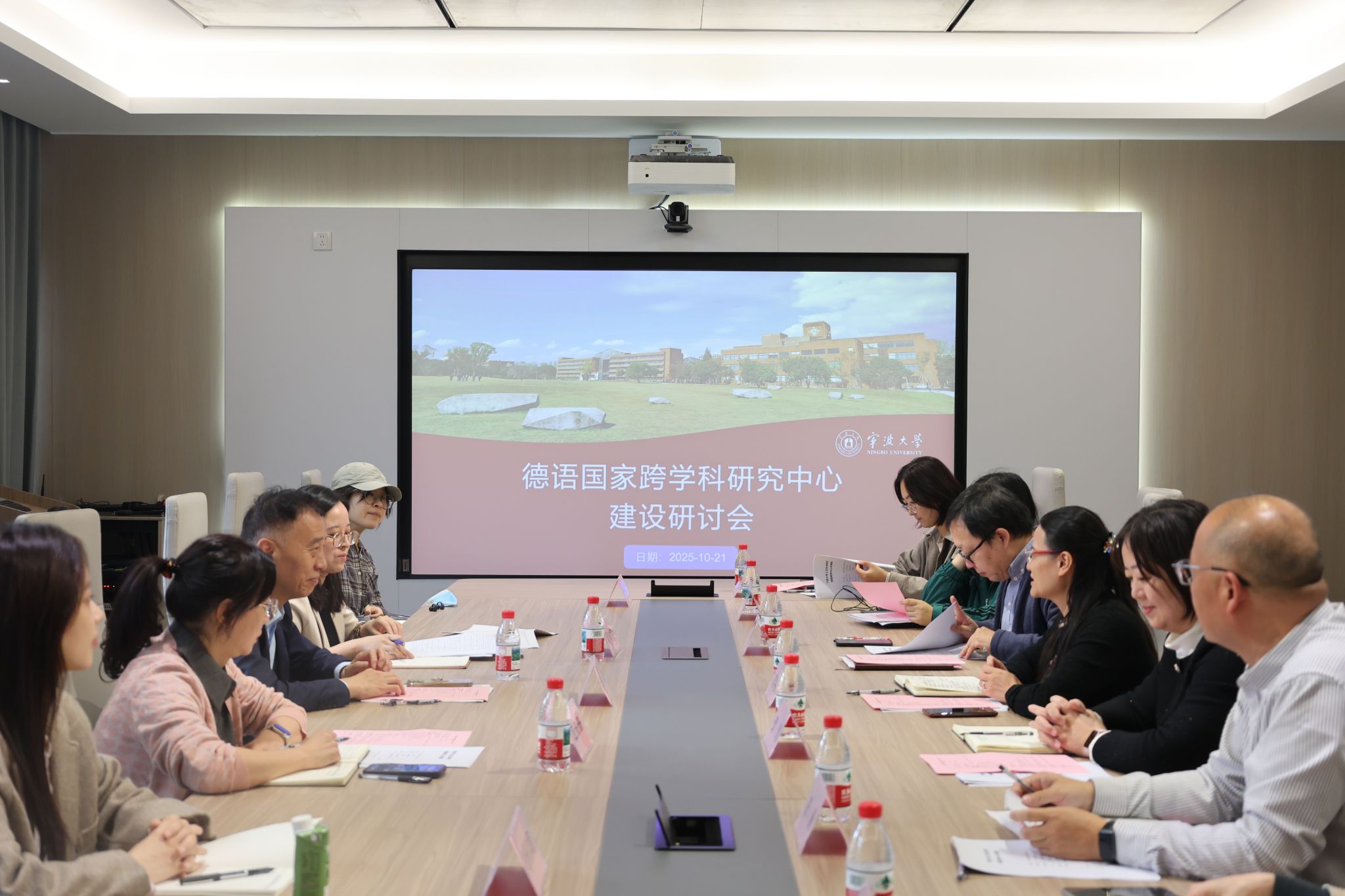 2025年10月21日下午,外国语学院在422会议室召开“德语国家跨学科研究中心建设研讨会”。会议由外国语学院副院长张陟教授主持。特邀宁波大学包玉刚杰出教授、北京大学博雅教授、国务院学科评议组成员陈洪捷教授,宁波大学国际处周洵瑛处长、社科处应姗姗副处长出席。