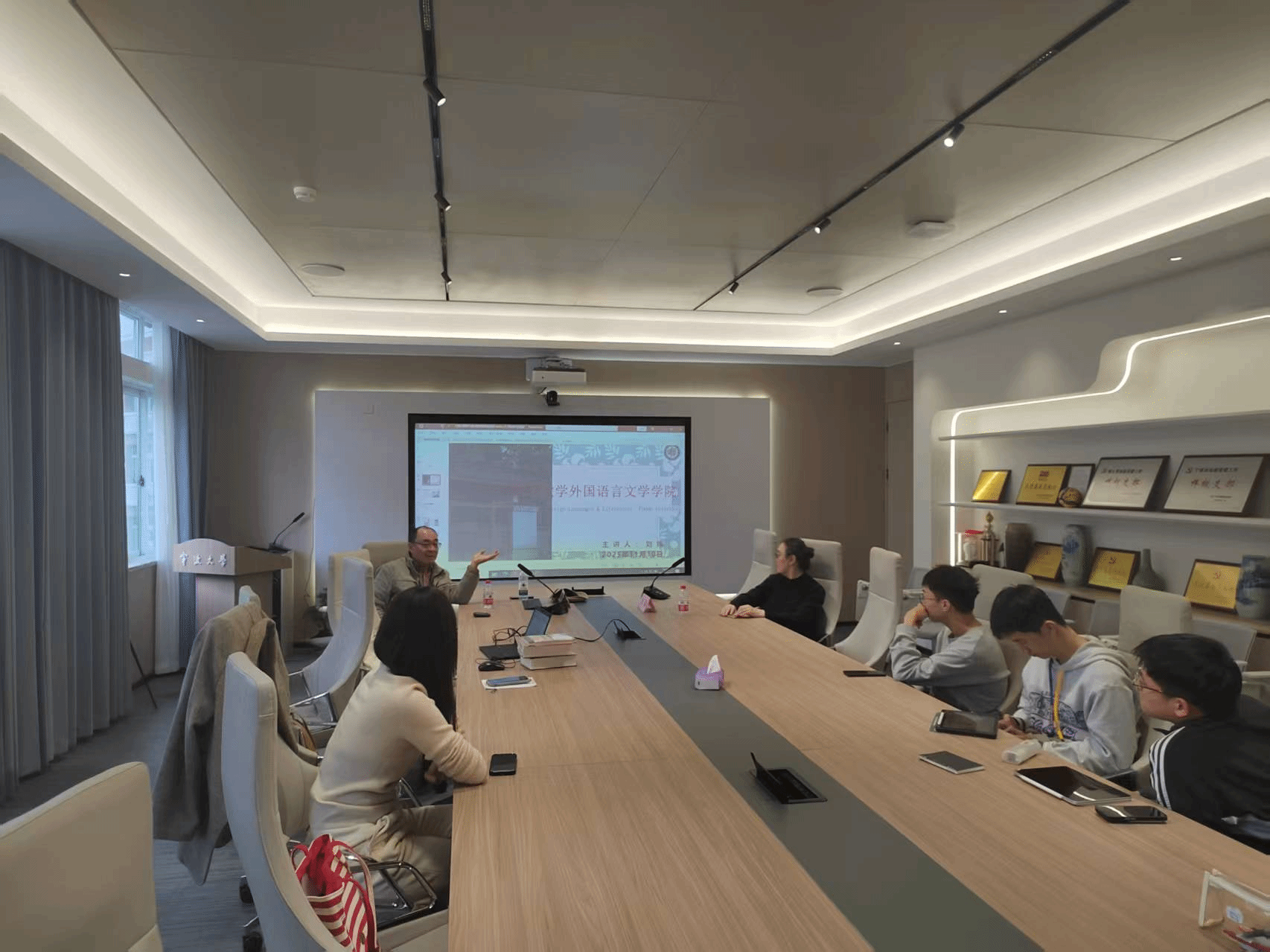 11月10日下午,复旦大学外文学院德文系刘炜副教授应邀做客宁波大学外国语学院“李达三讲堂”,作题为《没落的帝国挽歌——奥地利犹太作家约瑟夫·罗特笔下的哈布斯堡神话》的学术讲座。讲座由宁波大学外国语学院张芸教授主持,外国语学院德语系陈高雅、王婉赢、於伟澄等教师及德语系本科生共同参与。