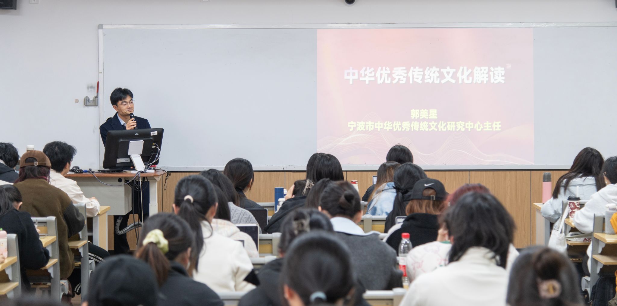 12月10日下午,一场以生命、价值与诗意栖居为核心议题的思想对话,在宁波大学外国语学院缓缓拉开帷幕。作为“中华思想文化翻译本科一流团队‘专家进课堂’系列活动”的重要组成部分,学院特邀宁波市中华优秀传统文化研究中心郭美星主任,带来了一场题为“中华优秀传统文化解读”的精彩讲座。活动由贺莺教授主持。