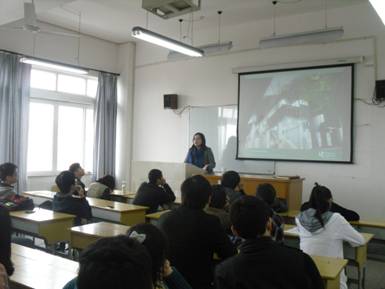 之后,Penny老师在507教室对留学班全体学生进行了留学方面的有关介绍。Penny老师先就阳光海岸大学的校内环境及其所在城市的秀丽风光作了介绍,详细向学生讲述了上课形式,住宿环境并展示了相关图片,使同学们对学校的学习及生活有了一个比较全面的了解。其次Penny老师对阳光海岸大学的杰出专业,入学要求及相关申请条件和费用做了细致的说明。在现场互动环节,学生们对该校表示了浓厚的兴趣,就学习生活的具体细节作了许多提问。会后不少学生又就自身情况与Penny老师进行了交谈并得到了满意的答复。