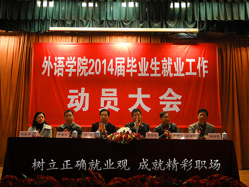 11月20日下午,我院2014届毕业生就业工作动员大会在锦绣小剧场顺利召开。此次大会主题为“树立正确就业观,成就精彩职场路”。会议由院党委书记戚锦阳主持,校学工部副部长俞金波、院长卢植、院党委副书记倪志华、副院长于善志、王红阳、各系主任、班主任、辅导员出席会议,我院2014届全体毕业生参加了此次会议。