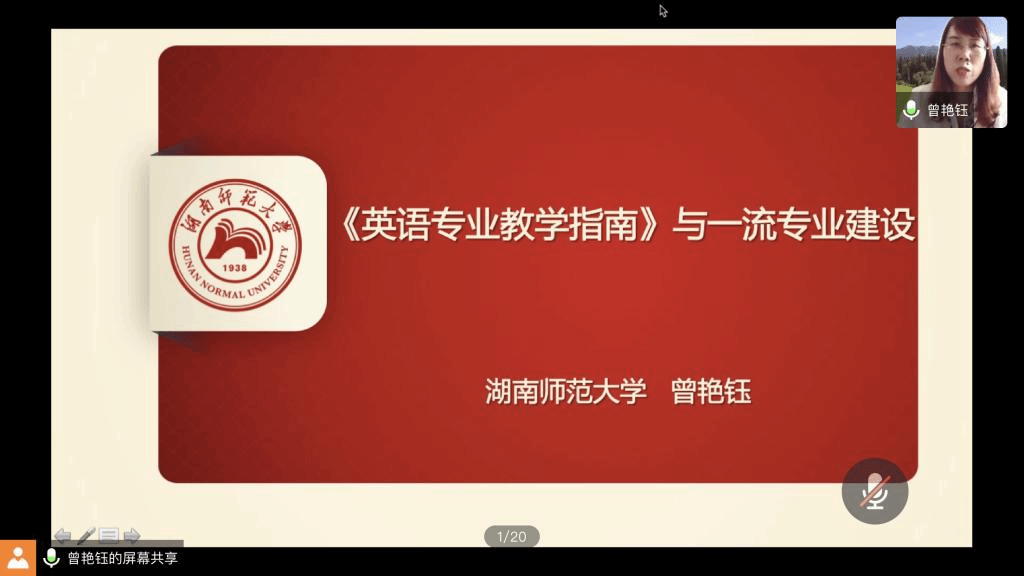 6月12日下午,湖南师范大学外国语学院院长、《外国语言与文化》执行主编、教育部高等学校外国语言文学类专业教学指导委员会英语专业分指委秘书长曾艳钰教授做客宁波大学“人文社会科学名家讲坛”第254讲,通过网络在线方式作了题为《英语专业教学指南》与一流专业建设的学术报告,校外及外国语学院教师聆听了讲座。